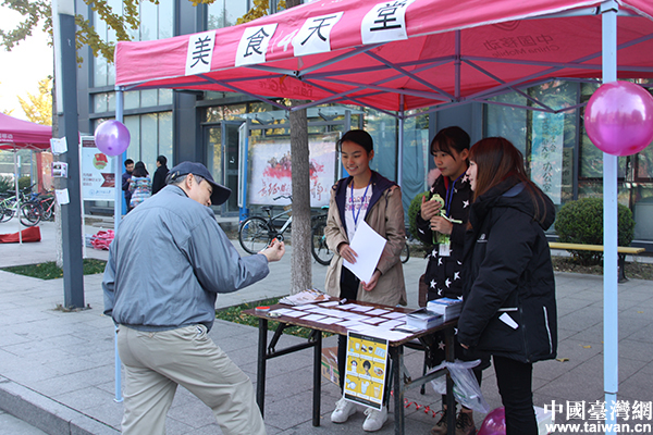 “臺(tái)中的老婆餅里沒(méi)有老婆,太陽(yáng)餅里也沒(méi)有太陽(yáng),它就是一種餅包著甜的餡。”來(lái)自北京科技大學(xué)的臺(tái)灣交換生呂泓翰親切有趣地向大陸學(xué)生介紹著臺(tái)灣的美食,“除了鳳梨酥外,很多夜市的美食比如雞排、奶茶都是蠻棒的。”北京理工大學(xué)的北理粵文化交流社及北理海峽文化交流協(xié)會(huì)也參與了此次活動(dòng)。