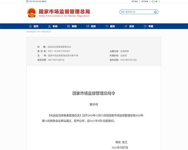 國家市場監督管理總局日前發布了《化妝品注冊備案管理辦法》。