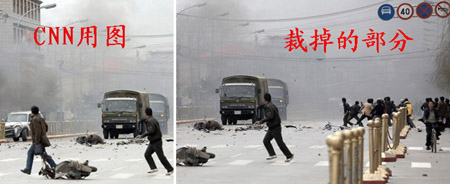 引起中國網民憤慨的報道大多來自美國有線電視新聞網(CNN)、英國廣播公司(BBC)以及德國《柏林晨報》等西方媒體。3月17日,BBC在其網站上刊登了一張照片,說明寫的是“在拉薩有很多軍隊”,而畫面卻是中國公安武警協助醫護人員將受傷人員送進救護車的場景。而在CNN網站發表的一張圖片,卻將反映暴徒投擲石塊攻擊軍車的部分裁剪掉,而僅顯示出軍車在路上行駛,前面則有人在奔跑。這些或張冠李戴或刻意歪曲的報道,其用意不言自明。