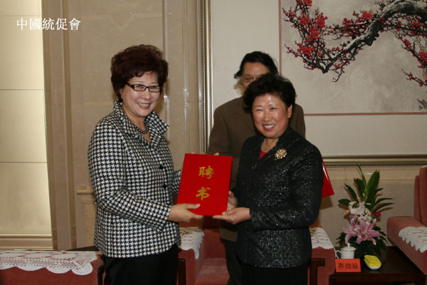統促會秘書長尤蘭田為統促會各專門委員會主任、副主任頒發聘書(圖)