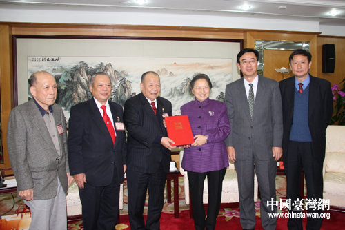 中國和平統(tǒng)一促進(jìn)會向臺灣道教文化團體聯(lián)合總會訪問團贈送禮物。