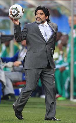 馬拉多納非常少見地身穿正裝出席比賽。熟悉馬拉多納的人知道,這位狂放不羈的足球天才更喜歡身穿運動服。但是,時間飛逝,馬拉多納已經接受了新的角色——阿根廷國家隊的主教練。馬拉多納以這樣一種從未有過的方式向全世界宣告:世界杯,馬拉多納回來了!