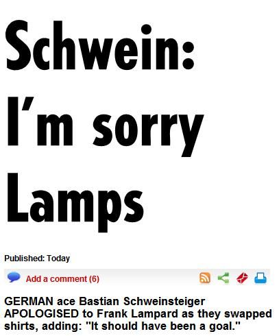 之后,施魏因斯泰格就赤裸著上身沖向了看臺上的女友,并將蘭帕德的球衣給了她,于是賽后人們看到了“小豬”女友穿著英格蘭紅色8號的奇怪一幕。不過,據說周圍的德國球迷為這一幕大聲鼓掌叫好。