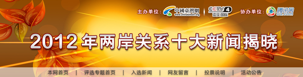 中國臺灣網自2005年推出“兩岸關系十大新聞評選”,至今已經連續舉辦了7屆。每一年我們都同專家學者與廣大關注兩岸關系發展的網友一道,評選出當年最具影響力的兩岸關系十大新聞事件。同時,也以此為線索回顧...