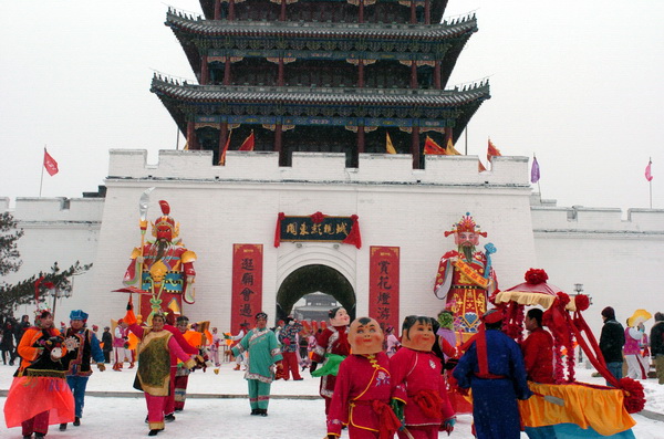 1月11日,沈陽關東廟會在位于棋盤山風景旅游開發(fā)區(qū)的關東影視城向游人開放。主辦方在廟會期間將舉辦對春聯(lián)、貼窗花年畫、四平燈市等民俗活動,呈現(xiàn)出上世紀二三十年代沈陽城獨特的關東風情。(徐如光攝)