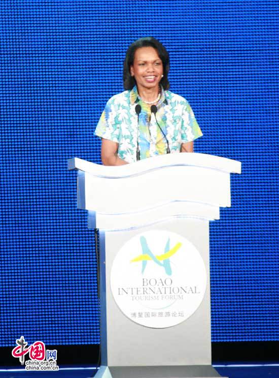 賴斯非常感謝博鰲國際旅游論壇給她這樣一個機會講話,她說,我在這里看到了很多老朋友,很高興在這里能和他們再續友誼。