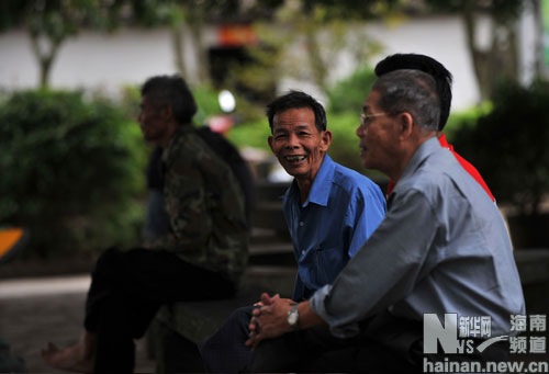 海南省海口市石山鎮(zhèn)美社文明生態(tài)村的幾位老人在村中的文化廣場上聊天(1月6日攝)。