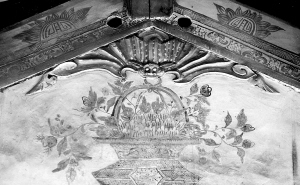 在鐘家老宅,最引人注目的是彩繪的裝飾畫面,大門墻楣的卷冊、門楣上方隔斷的兩側、前堂的山墻和次間內側墻楣,隨處可見。畫面最豐富的彩繪在前堂山墻門楣,有人物,有花草,有松柏,有耕牛,有雄雞,有喜鵲,有松鼠,有鷹隼,有亭子,有廊橋,不一而足。閻根齊總結了這些景物的含義:主要反映了“樵漁耕讀”和“亭臺樓閣”2個主題,可見主人的高尚追求和美好向往。