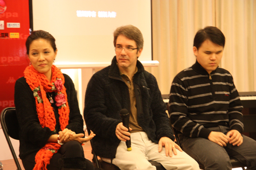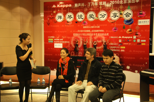 中國臺灣網12月26日北京消息 臺灣表演工作坊作品《彈琴說愛》于平安夜在北京上演,圣誕當天主創丁乃箏攜主演范德騰、許哲誠在北京樂博琴行舉行觀劇分享會,與觀眾和媒體共同分享《彈琴說愛》的由來,以及對于音樂、顏色、生命的理解與感動。