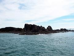 錠鉤嶼位于雞善嶼東南方,因形似船錠而名。除了小島本體外,還有大小六個嶼礁,全島由致密的柱狀玄武巖所構(gòu)成。長年經(jīng)風化及海蝕作用,形成造型奇特獨立的外貌,猶如海上石林。兩兩海石柱間互不相通,由縫隙觀可得一線天奇景,故錠鉤嶼又一美名“海上小桂林”。