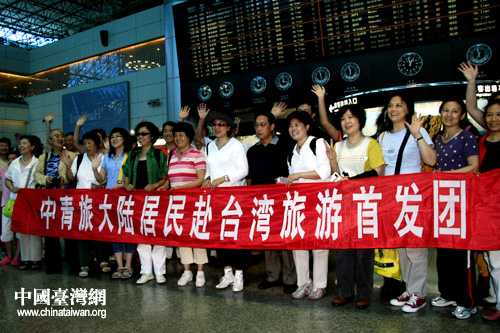 中國臺(tái)灣網(wǎng)7月11日臺(tái)北消息 來自北京的近百名游客11日結(jié)束為期8天的在臺(tái)旅程,于北京時(shí)間下午14點(diǎn)10分乘坐國航包機(jī)由臺(tái)北桃園機(jī)場(chǎng)離臺(tái)返京。這是大陸居民赴臺(tái)旅游首發(fā)團(tuán)中首批返回大陸的游客。 率團(tuán)來臺(tái)進(jìn)行交流考察的海旅會(huì)會(huì)長(zhǎng)邵琪偉臨行前在機(jī)場(chǎng)發(fā)表簡(jiǎn)短講話,他表示:臺(tái)灣擁有豐富的旅游資源,島內(nèi)各界為大陸居民赴臺(tái)旅游做了充分準(zhǔn)備,希望兩岸旅游界進(jìn)一步加強(qiáng)交流與合作,共創(chuàng)雙贏。