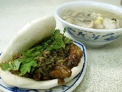 位于公館商圈內的“藍家割包”,傳統的割包與四神湯是許多人到公館來一定要品嘗的美味。藍家割包面皮綿密,并將溫體豬肉爆香炒過,瘦肉與肥肉分開鹵制,多年熬煮下來的老鹵汁加在肉中滲透入味,夾上純花生粉、酸菜、香菜,幾種配料不會偏甜、偏咸、偏酸,融合的恰到好處。