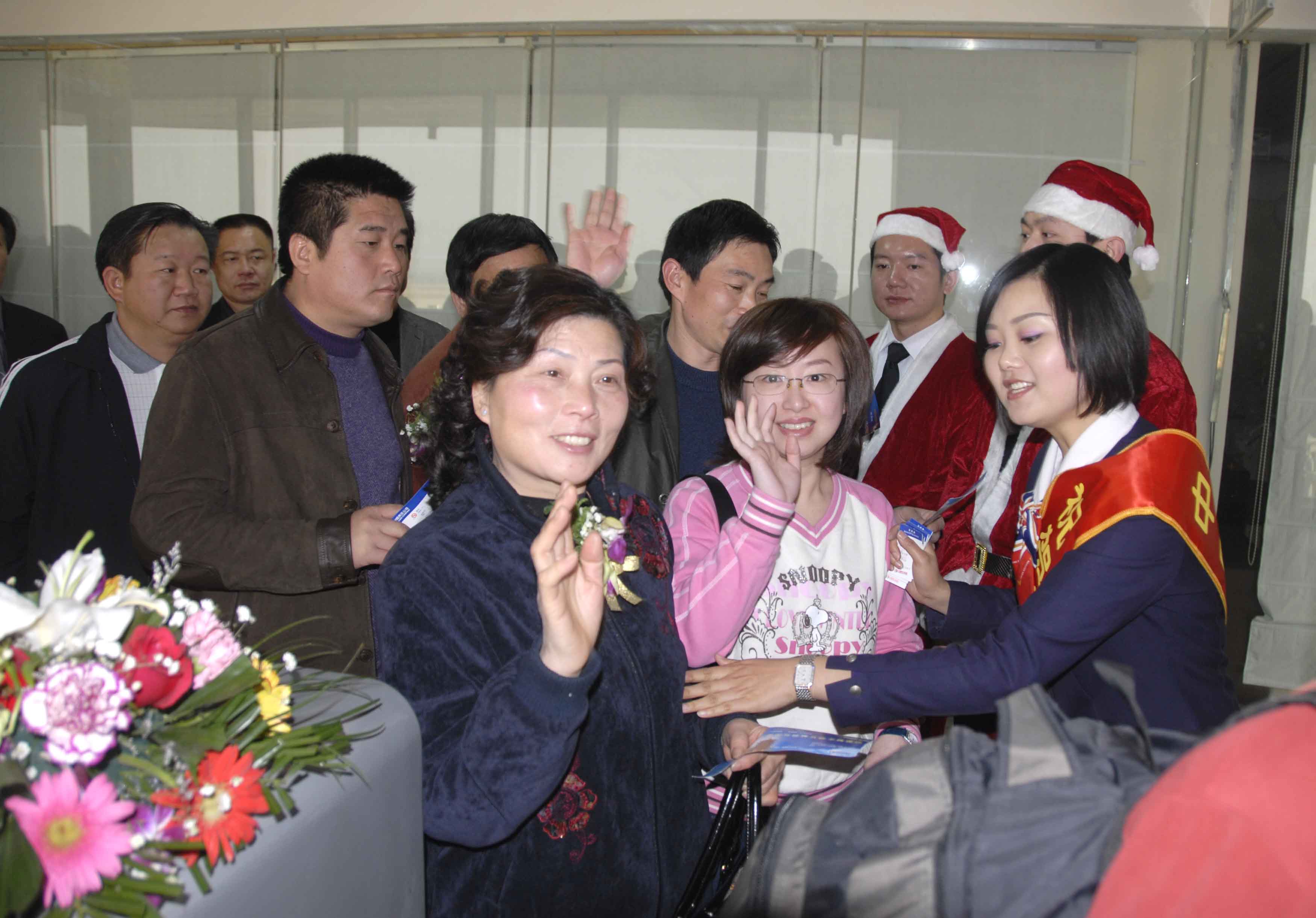 12月25日晚上8時許東航武漢公司領導在機場迎接執行漢臺直飛的MU2087/2088航班機組成員 攝影:嚴越培