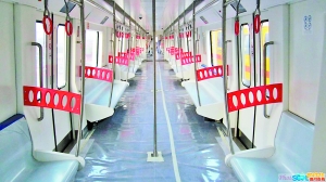 ■車內 座椅和輕軌二號線車輛相同,均為靠窗設置,乘客對坐,采用不銹鋼材質。有專門的殘疾人座位。座位比輕軌二號線更有流線感。
