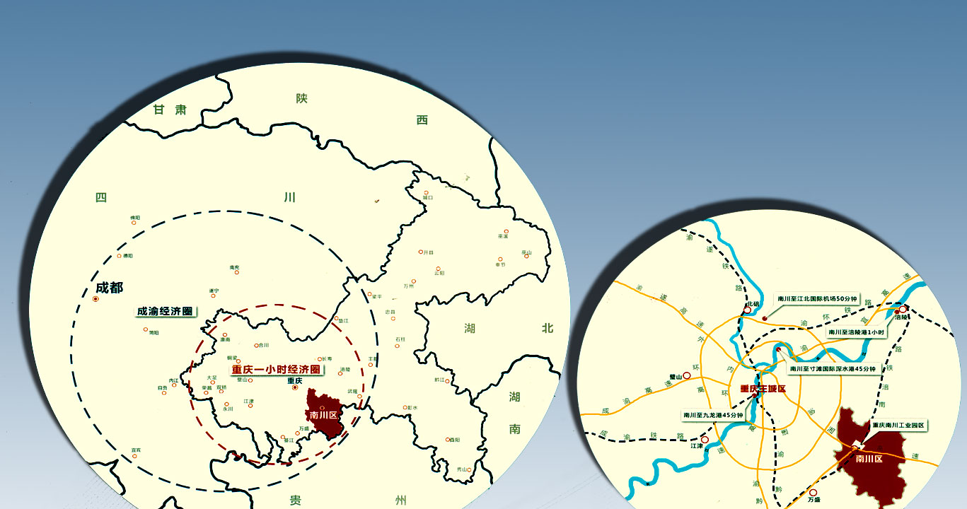 一小時經濟圈“是指以主城為核心,在交通1小時可通達的范圍內,形成一個具有明顯聚集效應、具備競爭優勢的西部地區最大城市群。照初步構想,一小時經濟圈”由24個區縣組成。這些區縣包括:主城9區、南川、雙橋、長壽、合川、涪陵、永川、江津、萬盛、璧山、綦江、榮昌、大足、潼南、銅梁、武隆。