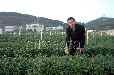 十二月二十六日,廣西玉林市三山坡懿德興農業有限公司總經理洪武雄先生向訪客介紹有機茶種植經驗。洪武雄先生投資廣西玉林農業已十多年。他稱,玉林海峽兩岸農業合作實驗區充滿商機。目前三山坡公司已在玉林市仁東鎮石地村建立了一百四十畝的農業產業基地和二百畝茶園。中新社發  蔣雪林 攝