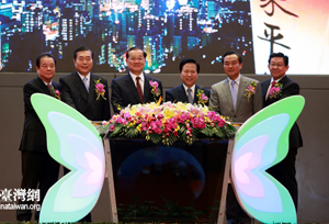 “江蘇臺灣周暨2010(南京)臺灣名品交易會開幕式”今天上午在南京國際博覽中心舉行。江蘇省委書記梁保華,中共中央臺辦、國務院臺辦主任王毅,中國國民黨榮譽主席連戰等共同按下啟動按鈕。