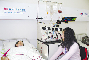 杭彬陪同韓秀芳采集造血干細胞,消除韓秀芳的不安。杭彬 薛馬義 攝