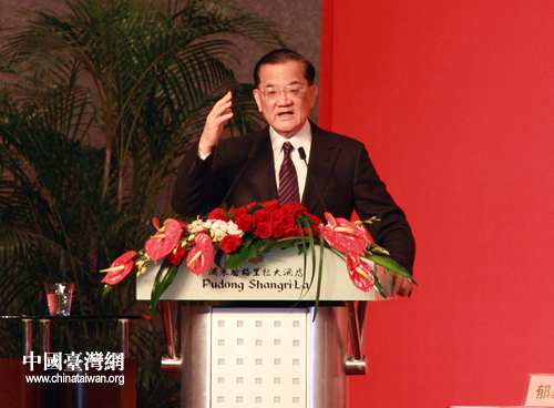 中國(guó)國(guó)民黨榮譽(yù)主席連戰(zhàn)在兩岸經(jīng)貿(mào)文化論壇上講話。中國(guó)臺(tái)灣網(wǎng) 張弛 攝