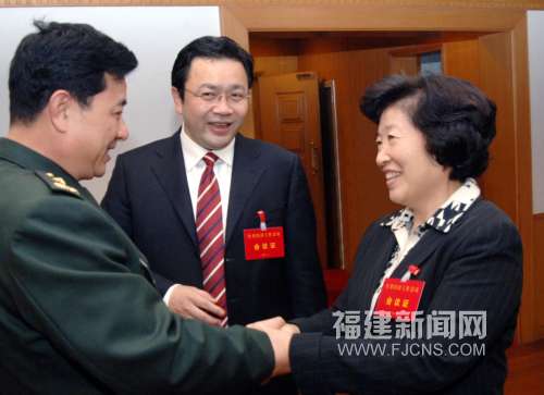 12月25日,履新近一個月的中共福建省委書記孫春蘭(右)出席福建省經濟工作會議與參會代表握手交談。當日,福建省經濟工作會議在福州召開,中共福建省委書記孫春蘭在會上作講話時指出:福建要發揮“五緣”優勢,積極承接臺灣產業轉移。(記者 劉可耕 攝)