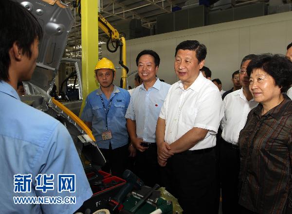 中共中央政治局常委、中央書記處書記、國家副主席習近平9月3日至6日在福建調研。這是9月4日,習近平在戴姆勒汽車工業有限公司總裝生產線,了解企業自主創新和生產經營情況。 新華社記者蘭紅光攝
