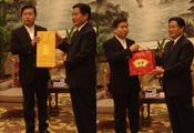 張傳林與張顯耀互贈禮品