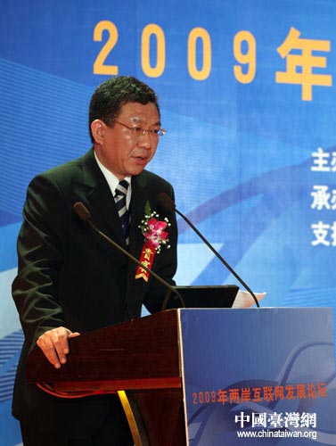 2009年兩岸互聯網發展論壇7月7日上午9時在北京開幕,圖為臺灣旺旺中時媒體集團工商時報社長王嶠奇在開幕式上致辭。(中國臺灣網 鐘寶華 攝)