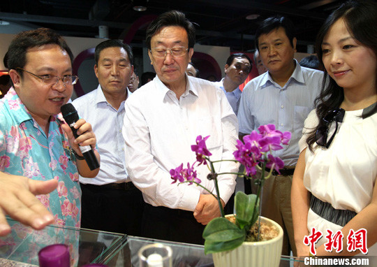 6月20日,河南省長郭庚茂率領(lǐng)“中原經(jīng)濟(jì)區(qū)合作之旅---走進(jìn)臺灣”參訪團(tuán)在臺南市“蘭花生物科技園”考察。中新社發(fā) 趙振清 攝