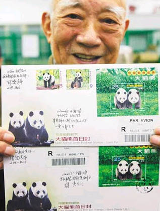 臺灣“中華郵政”昨天發行貓熊郵票,吸引大批郵迷,一早就去排隊的老先生,一買到馬上就用首日封寄信到上海。臺灣《聯合報》圖