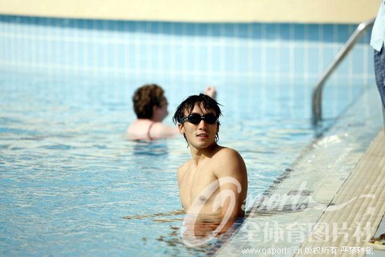 1月3日,國足在多哈游泳放松備戰亞洲杯。