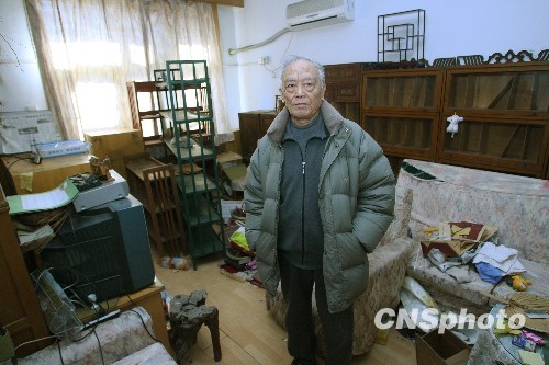 12月20日,已故國學大師季羨林的兒子季承來到父親在北大朗潤園的故居,向記者證實父親的舊居遭竊,竊賊是從不設防的陽臺上破窗而入的。據(jù)季羨林先生的關門弟子、復旦大學歷史學系教授錢文忠在其博客中稱,12月16日發(fā)現(xiàn)盜竊,幾千冊珍貴的線裝古籍、數(shù)量不等的佛像丟失,損失以百萬計。季承表示,已向公安機關報案。 中新社發(fā) 蘇丹 攝