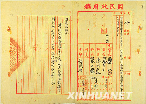 這是1938年國民政府特派蒙藏委員會(huì)主任吳忠信主持第十四世達(dá)賴?yán)镛D(zhuǎn)世事宜的令。 新華社發(fā)