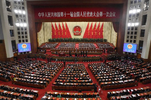 認真審議,鄭重選擇。出席十一屆全國人大一次會議和全國政協十一屆一次會議的代表、委員,肩負起億萬人民的重托,莊嚴地行使神圣的民主權利