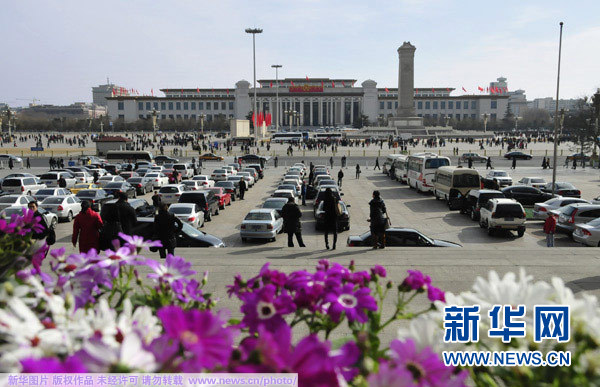 3月1日,人民大會(huì)堂東門外的廣場(chǎng)。十一屆全國(guó)人大第四次會(huì)議、全國(guó)政協(xié)十一屆四次會(huì)議即將開幕。新華網(wǎng) 翟子赫 攝