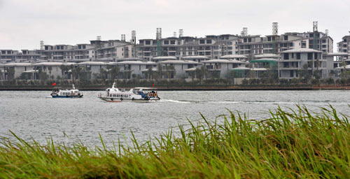 4月9日,游客乘坐觀光游艇游覽萬泉河。
