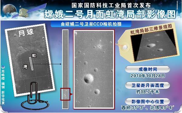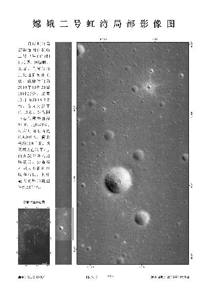 這是嫦娥二號虹灣局部影像圖(成像時間為10月28日)。 11月8日,國家國防科技工業局首次發布嫦娥二號月面虹灣局部影像圖。 新華社發