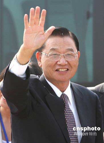 十一日下午三時(shí)十五分許,臺灣海峽交流基金會董事長江丙坤率海基會代表團(tuán)抵達(dá)北京首都機(jī)場,向在場的中外媒體揮手致意。中新社發(fā) 趙振清 攝