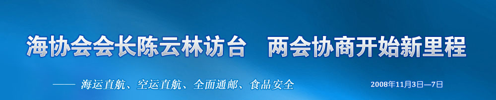 2008年11月3日,海協會會長陳云林率團訪臺,兩會最高領導人將在臺北進行會談,協商兩岸海運直航、空運直航、郵政合作、食品安全等議題并簽署協議,還將就兩會下輪協商議題安排、加強兩會聯系與交流等問題交換意見、做出規劃。