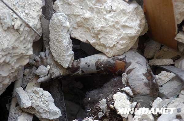 1月20日,在海地首都太子港,一名遇難者的遺體仍然被埋在一所大學醫學院的瓦礫中。目前,對地震幸存者的搜尋工作仍在繼續。新華社發(烏巴爾多·岡薩雷斯攝)