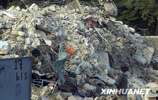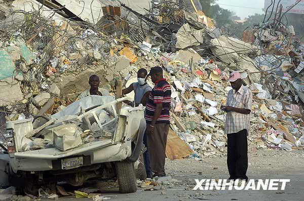 1月20日,在海地首都太子港,被地震震塌的建筑物的廢墟隨處可見。1月12日,海地發生里氏7.3級地震,造成巨大人員傷亡和財產損失。太子港街頭處處可見被地震震塌的建筑物的廢墟。新華社發(烏巴爾多·岡薩雷斯攝)