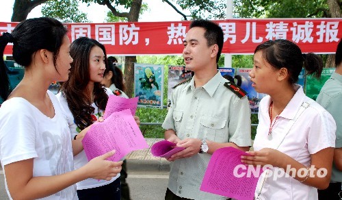 據(jù)總參動員部有關(guān)部門領(lǐng)導(dǎo)介紹,今年高校應(yīng)屆畢業(yè)生人數(shù)約為610萬人,其中已確定為預(yù)征對象的近13萬人。我國兵員征集對象主體調(diào)整始于2008年。當(dāng)年6月,總參謀部、總政治部和教育部、公安部、民政部聯(lián)合下發(fā)通知,宣布將征集對象主體從農(nóng)村青年、城鎮(zhèn)待業(yè)青年調(diào)整為全日制高中以上層次各級各類學(xué)校應(yīng)屆畢業(yè)生。當(dāng)年底,3.9萬余名高校畢業(yè)生攜筆從戎。