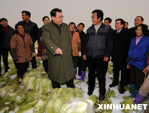 經過持續雨雪冰凍災害后,老百姓的生活到底怎么樣,李長春對此十分牽掛,1月31日一大早,他來到中百倉儲友誼路店,詳細了解生活必需品的供應和價格變化情況。隨后,他又踏著厚厚的積雪,來到武漢遠郊的蔬菜基地,向正在搶收白菜的農民了解蔬菜產銷情況。李長春強調,生活必需品的供應和價格問題,事關廣大人民群眾的切身利益,事關社會的安定祥和,必須下大氣力組織好群眾生活必需品特別是糧食、蔬菜、肉類等農產品的供應,穩定物價,保證人民群眾過一個歡樂祥和的春節。