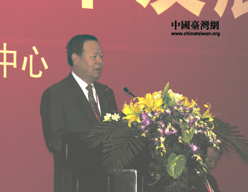 臺灣向陽公益基金會董事長廖正豪作大會發言(中國臺灣網 李杰 攝)