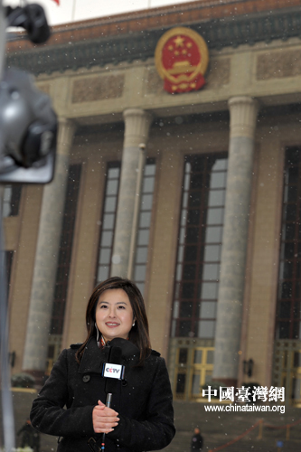 中央電視臺(tái)記者張泉靈一大早就到了人民大會(huì)堂前做報(bào)道。 (中國(guó)臺(tái)灣網(wǎng)發(fā) 肖春陽(yáng)、劉洋攝)