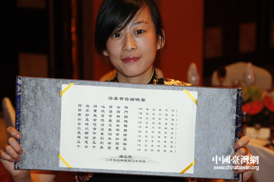 海峽交流基金會26日晚在南京紫金山莊設答謝晚宴。(中國臺灣網 鐘寶華 攝)