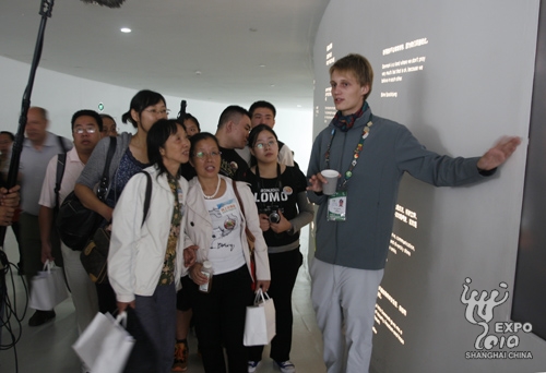 9月27日上午,網上世博會“展館直通車”駛入丹麥館。丹麥館館長Stine Guldmann與網上世博會項目總監王立平熱情地接待了前來的10名幸運網友,并向他們贈送了精美的禮品。