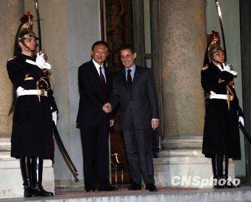 巴黎時間4日下午,薩科齊在總統府愛麗舍宮會見了楊潔篪,雙方進行了長時間交談。會見結束時,愛麗舍宮大院內已是華燈璀璨。薩科齊親送楊潔篪至總統府門外。