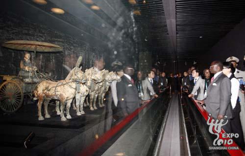 保羅·比約格·姆巴總理一行在中國(guó)國(guó)家館參觀國(guó)寶“銅馬車” 攝影:陳麗娜