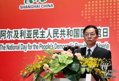 阿爾及利亞民主人民共和國國家館日官方儀式7月31日上午在世博中心隆重舉行。阿爾及利亞國務部長兼總統個人代表阿卜杜勒阿齊茲·貝勒卡迪姆(Abdelaziz BELKHADEM)、中國鐵道部副部長彭開宙出席儀式并致辭。上海市政府副秘書長尹弘主持儀式。上海世博會中國政府副總代表羅小光等出席儀式。