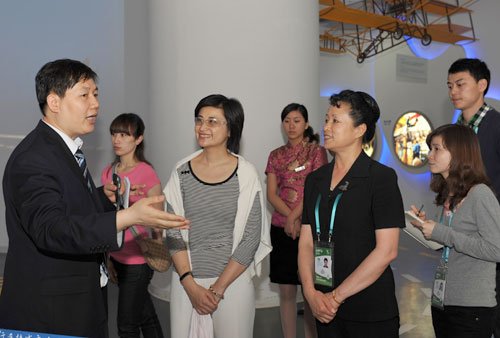 吳小莉參觀中國航空館 關注乘飛機上網技術